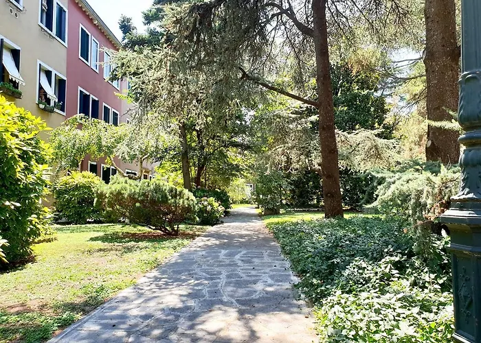 Die 85 m² große Ferienwohnung Patch Of Eden Venedig in Venedig befindet sich etwa 1 Kilometer vom Markusplatz und einen 20-minütigen Spaziergang vom T Fondaco dei Tedeschi by DFS entfernt. Außerdem gibt es in diesem Apartment eine Terrasse mit Blick auf den Garten.